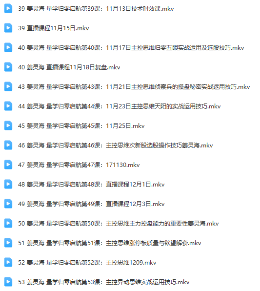 量学大讲堂姜灵海-归零启航2017年11-12月第4期股票视频教程【39-53课时 15视频 】